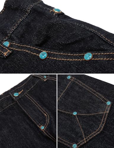 - 【Design】: Relaxed fit jeans with zipper,button closure, rivets on the pockets, stitched details, muti-pocket