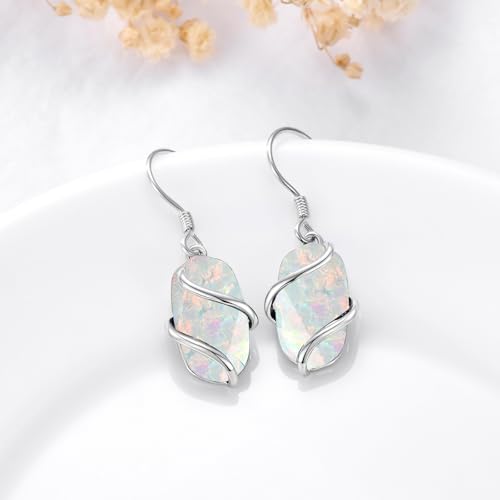 • 【Opal Earrings for Women】White opal drop earrings are made of 925 sterling silver, lead-free, nickel-free, and hypoallergenic. Drop dangle earrings size 0.71"*0.43". October birthstone earrings.