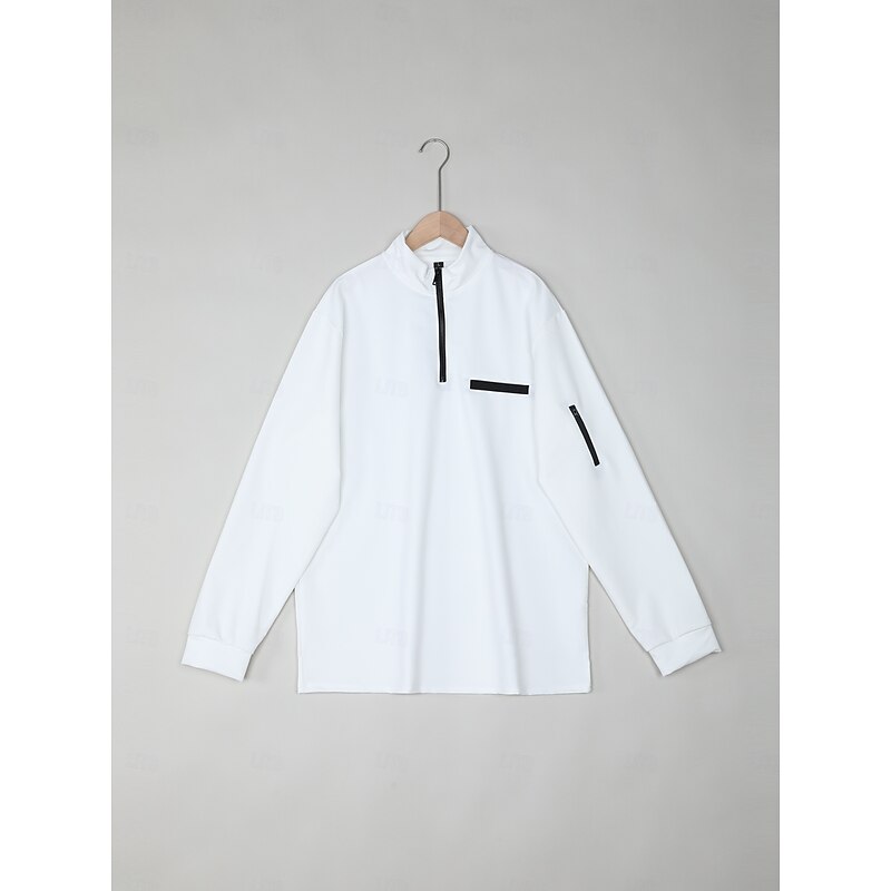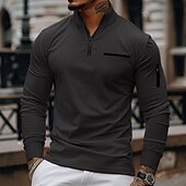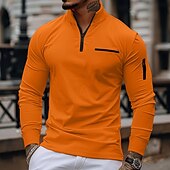 More information about Men's Polo Shirt Pullover Sweatshirt Sports Daily Wear Quarter Zip Long Sleeve Fashion Comfortable Plain Pocket Zip Up Spring & Fall Regular Fit Black White Navy Blue Orange Polo Shirt