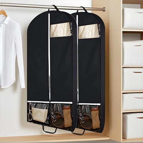 Garment Bag - Hanging Clothes Storage, Dirt Proof Suit Protector | Compact Airplane Clothes Pouch, Large Dust Cover with Pockets Organization for Shirt Coat Dress Women Clothing Wardrobe Closet Moving