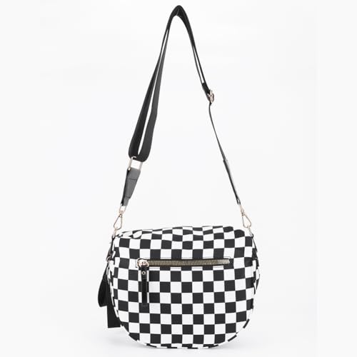 HOT ! JQWSVE Checkered Crossbody Bag Bum Bag for Women Checkered Purse Plus Size Crossbody Bags Black and White Purse Out Going Bag