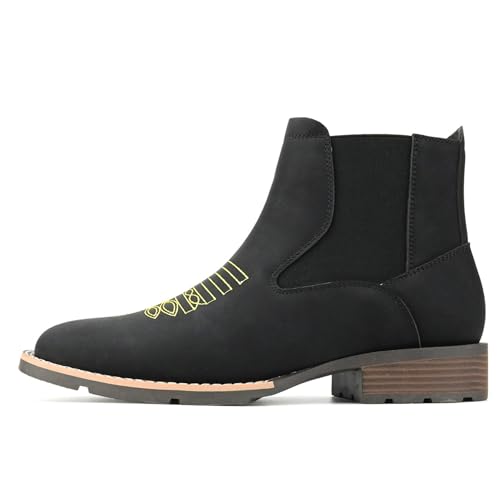 Men Western Ankle Cowboy Boots Square Toe Embroidered Pull On Chelsea Ankle Booties Comfort Casual Dress Retro Slip On Short Boots 6