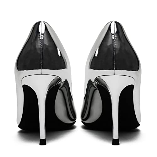 MOOMMO Women Patent High Heels Pumps Shoes Pointed Toe Slip On Metallic Stiletto Heels Dress Shoes Pointy Closed Toe 3" Kitten Heel Dress Sandals Office Ladies Bridal Wedding Party 4-13 M US