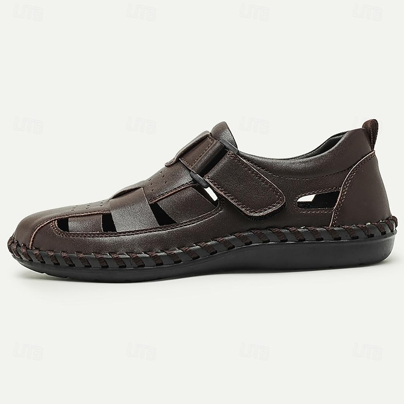 Men's Sandals Fishermen sandals Casual Beach Leather Breathable Comfortable Slip Resistant Magic Tape Buckle Black Coffee 9
