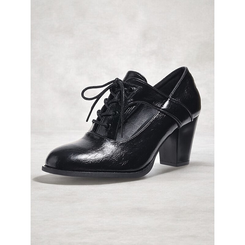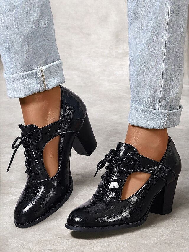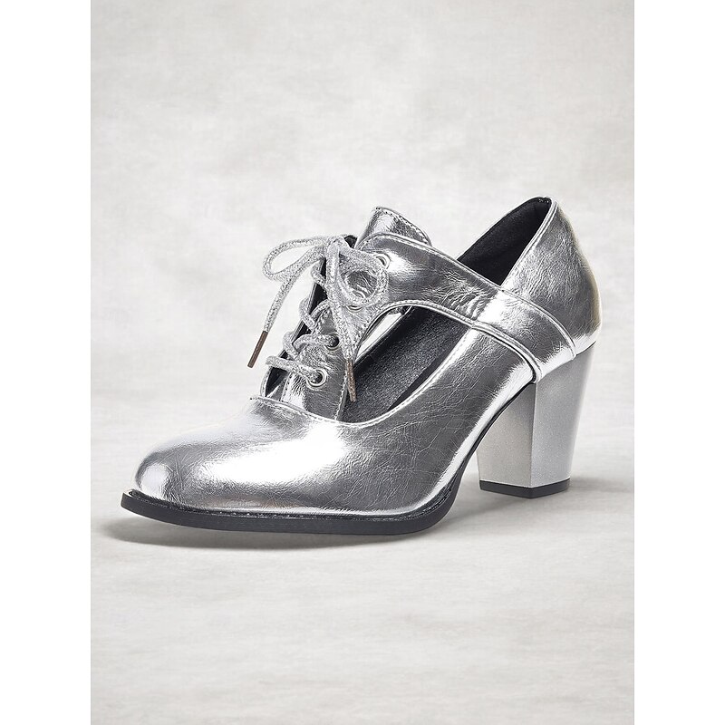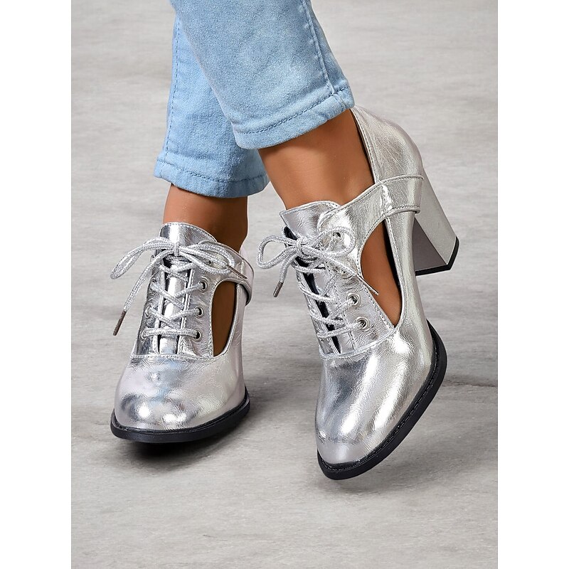 Highlights [Materials:] Expertly crafted from faux leather, these Women's Vintage Lace-Up Heeled Oxford Shoes offer a polished and sophisticated finish. The high-quality materials ensure durability and a sleek appearance that complements the shoe's vintage charm. [Design & Fit:] Featuring a chunky heel design, these shoes provide a stable base and sleek elevation for both comfort and fashion. The classic round toe maintains a timeless appeal, while the lace-up closure allows for a customizable, secure fit. [Unique Features:] These shoes are highlighted by their metallic, block heel, adding a glamorous touch for any special occasion. The cutout details on the sides introduce a modern flair, enhancing breathability and style. [Occasions:] Ideal for a variety of events, whether at work or for a special gathering. These shoes transition seamlessly from professional office settings to chic social outings, offering versatility and elegance in one package. [Size Range:] Available in a comprehensive range of sizes including US5.5 to US10.5, these shoes cater to a broad audience, ensuring a suitable fit for many foot sizes. Perfect for everyday use. supreme materials and excellent craftsmanship ensure long-lasting durability.