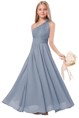 trending ! One Shoulder Junior Bridesmaid Dresses Flower Girl Chiffon Maxi Dresses AI020