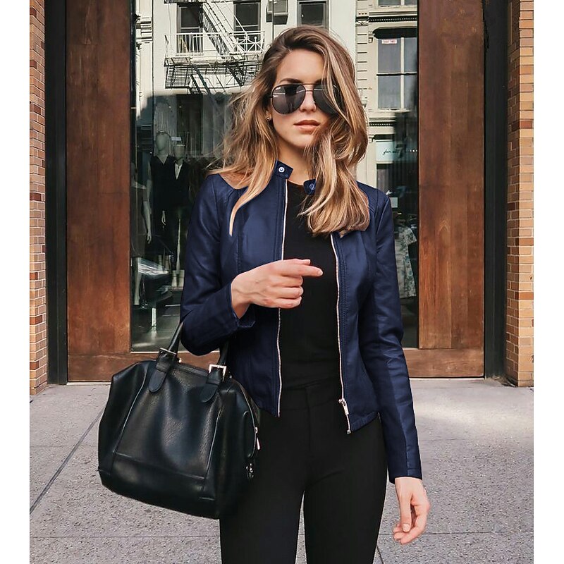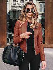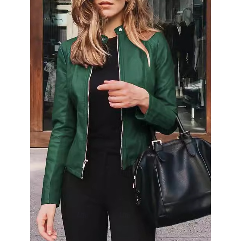 : Crafted from high-quality faux leather, this jacket offers a sleek and polished look with micro-elastic properties for extra comfort. It is designed to provide a chic and modern appearance, suitable for stylish outings.