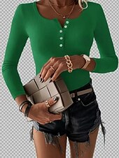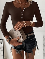 More information about Women's Blouse Solid Color Stylish Casual Long Sleeve Square Neck Regular Tops Daily Buttons Black White Brown Green Spring Fall