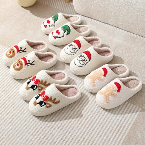 Christmas Slippers for Women, Cute House Shoes with Reindeer, Santa Claus, Gingerbread Man, Xmas Tree, Adult Fluffy Winter Home Slides for Couples, Kawaii Fuzzy Cozy 6