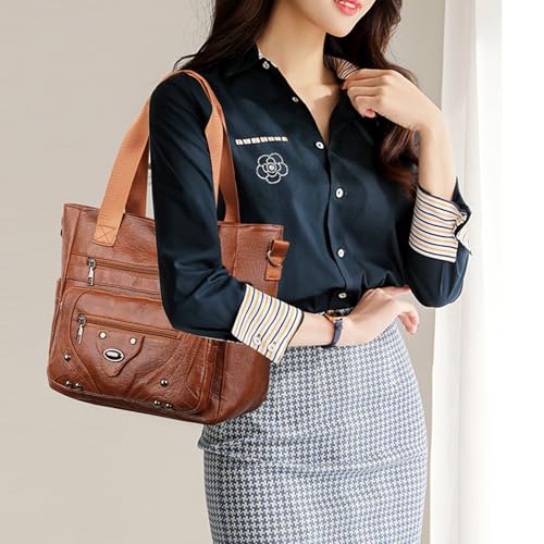 Women's Fashion Tote Handbag and Purses, Shoulder Bag, Top Handle Satchel, Washed Synthetic Leather 5
