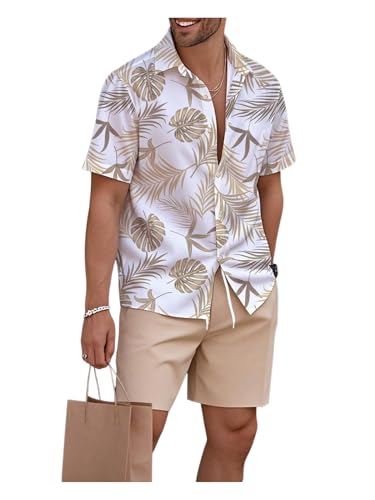 GORGLITTER Men's 2 Piece Matching Outfits Tropical Print Short Sleeve Button Down Hawaiian Shirt and Shorts Set