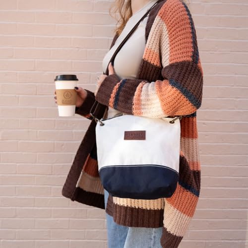 • ADJUSTABLE AND LIGHT WEIGHT: Handcrafted from recycled sail cloth, the Crossbody Bag features an adjustable leather strap allowing easy adjustment to the length thats incredibly pleasant for you. 25" drop length, Dimensions: 11"w x 8.5"h x 4"d