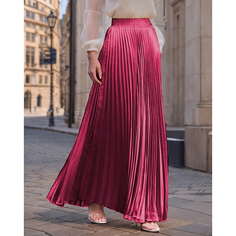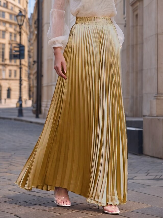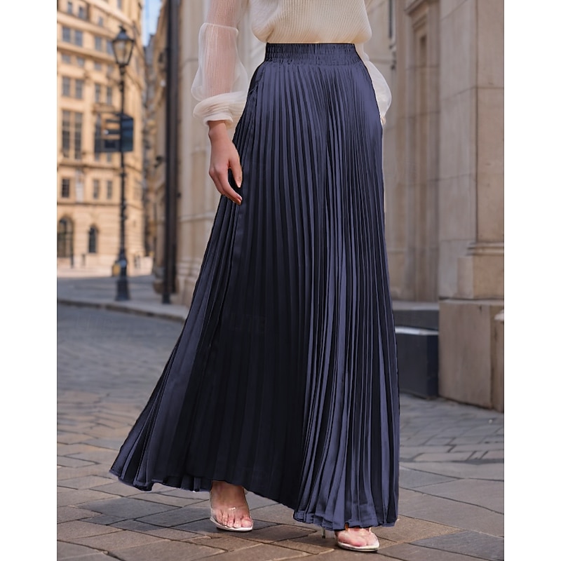 More information about Women's Skirt Long Skirt Fashion Long Maxi High Waist Skirts Solid Colored Ruched Pleated Shimmery Micro-elastic Daily Holiday Silver Peacock Blue Navy Black Spring, Fall, Winter, Summer Polyester