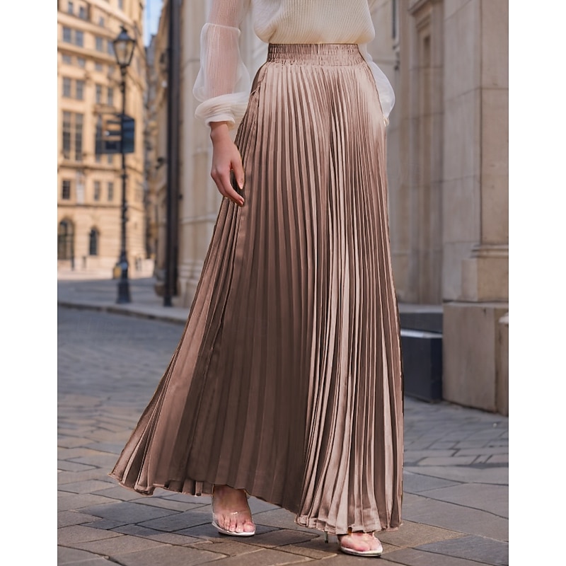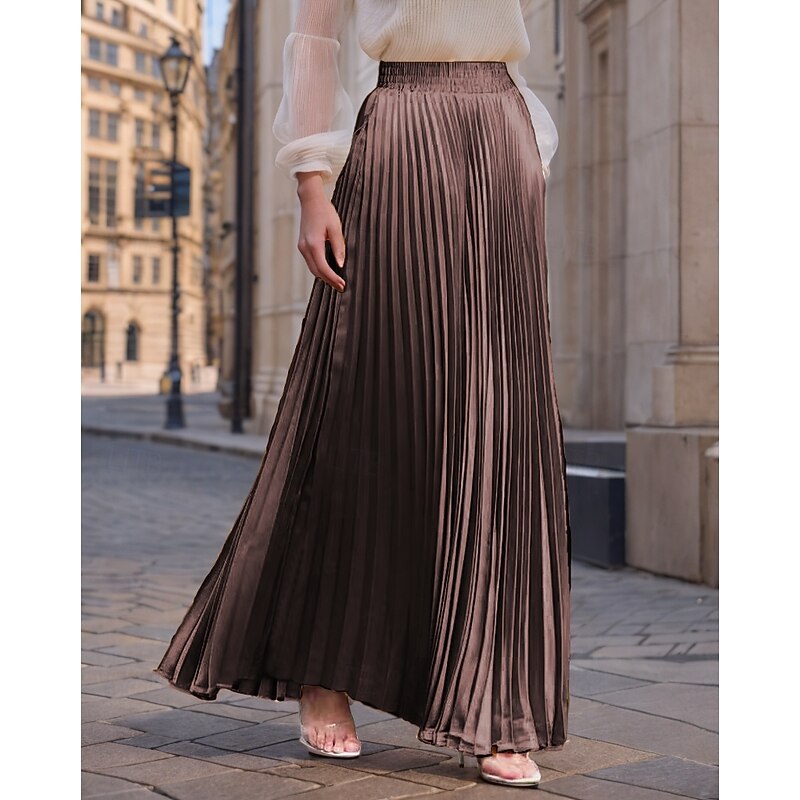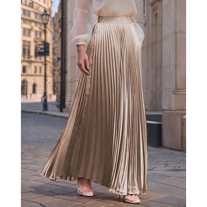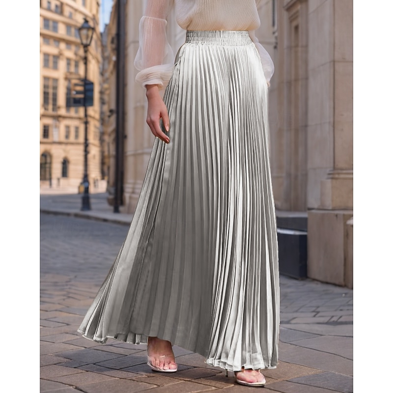 HOT ! Women's Skirt Long Skirt Fashion Long Maxi High Waist Skirts Solid Colored Ruched Pleated Shimmery Micro-elastic Daily Holiday Silver Peacock Blue Navy Black Spring, Fall, Winter, Summer Polyester