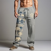 More information about Men's Graphic Animal Tribal Linen Pants Pants Trousers Baggy Pants Mid Waist Vintage Casual Vacation Daily Wear Going out Spring Fall Black White khaki