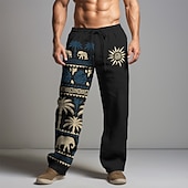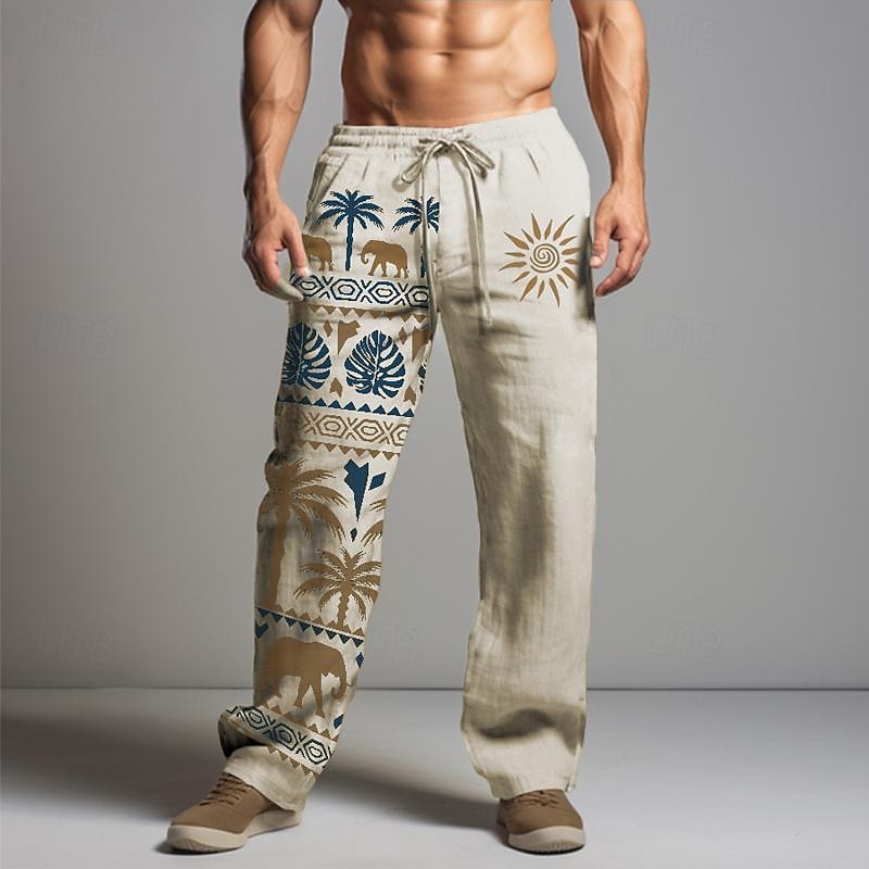 Men's Graphic Animal Tribal Linen Pants Pants Trousers Baggy Pants Mid Waist Vintage Casual Vacation Daily Wear Going out Spring Fall Black White khaki