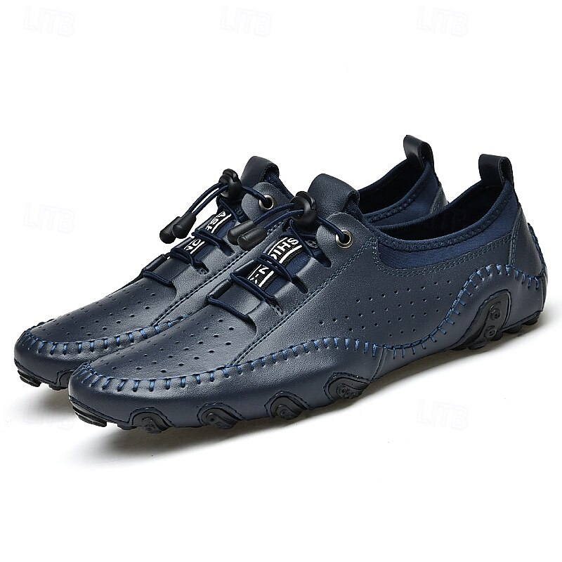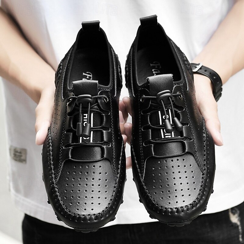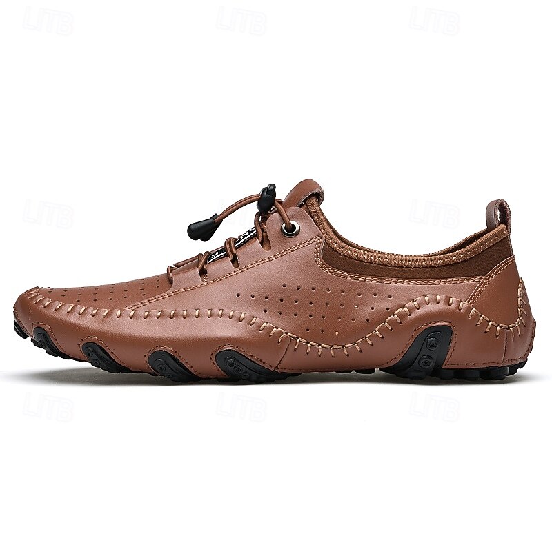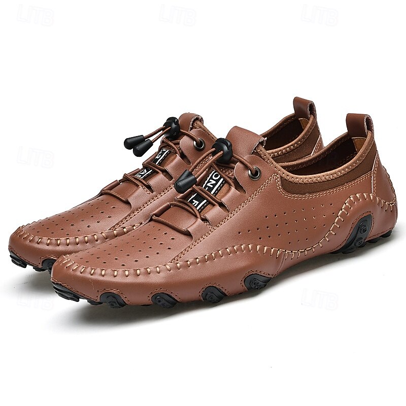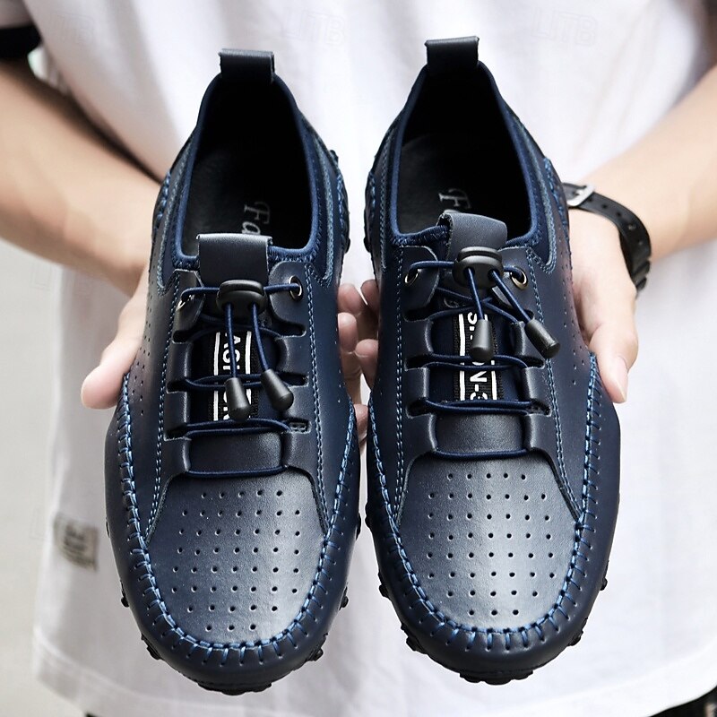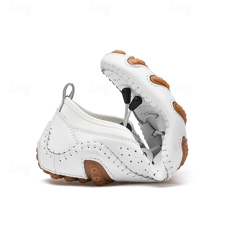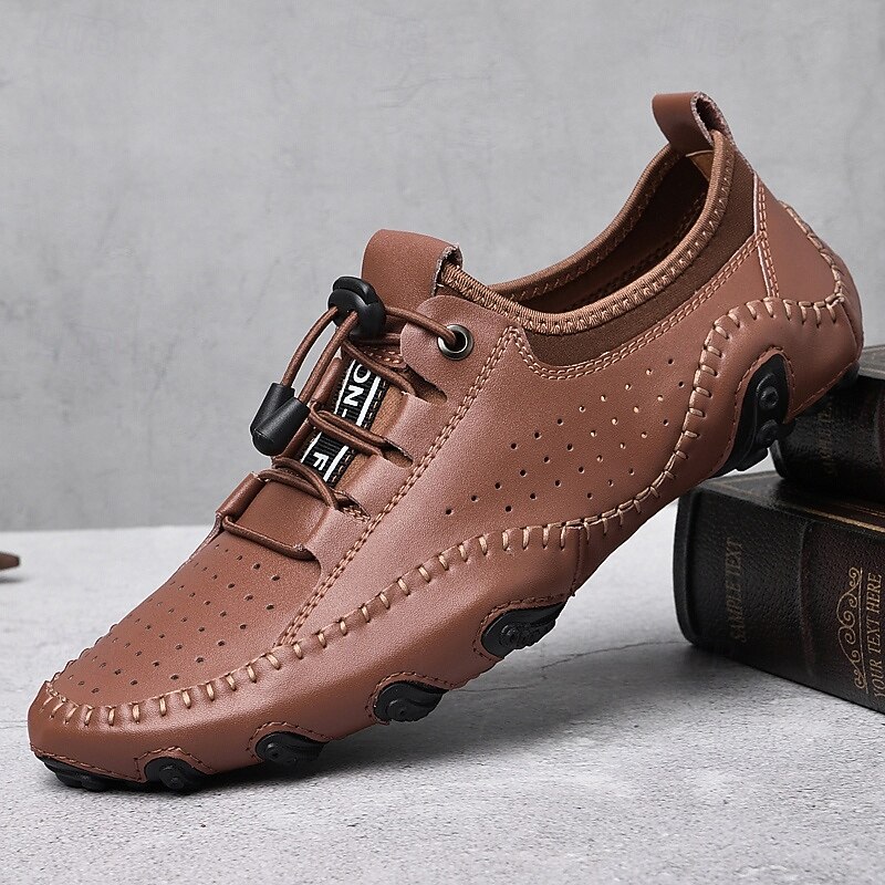 Highlights [Fabric & Material]: Crafted from premium leather with a PU lining, these men's casual shoes feature a breathable mesh upper with sleek perforations. This combination ensures enhanced breathability, keeping your feet comfortable during wear. [Design & Fit]: The shoes boast a sleek and sporty design in a predominantly white color scheme, complemented by hand-stitched detailing. The elastic bungee lace system offers an adjustable and secure fit, enhancing convenience and style. With a round toe shape and a unique segmented tan-colored rubber outsole, these shoes are designed for flexibility and superior traction on various terrains. [Design Highlights]: Featuring hand-stitched detailing and a perforated design, these shoes emphasize both function and fashion. The contrasting colored outsole not only adds visual appeal but also ensures slip resistance, making them a standout choice for any casual wardrobe. [Occasions]: Perfect for casual outings, weekend gatherings, and light athletic activities. Whether you're heading for a relaxed day with friends or a leisurely walk, these shoes provide both comfort and style. [Size Range & Recommendations]: Available in a variety of sizes, ranging from US7 to US11.5, these shoes cater to a broad spectrum of foot sizes, ensuring the right fit for every wearer. Ideal for those seeking a blend of comfort and contemporary style in their everyday footwear. Perfect for everyday use. supreme materials and excellent craftsmanship ensure long-lasting durability.