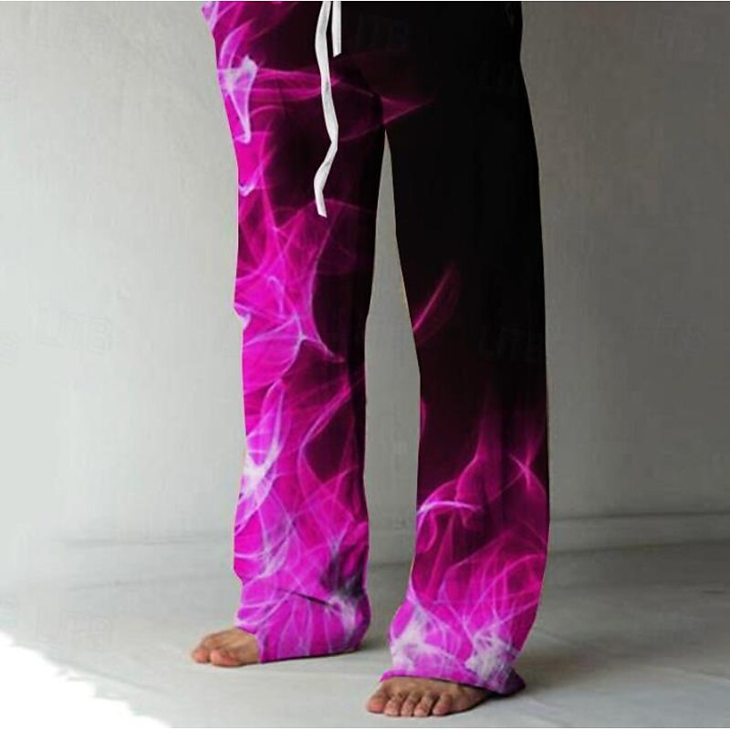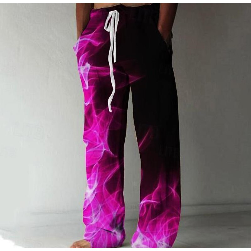 Men's Trousers Summer Pants Beach Pants Elastic Drawstring Design Front Pocket Straight Leg Graphic Prints Flame Comfort velvety Casual Daily For Vacation Linen favor Fabric Fashion Designer Yellow Blue