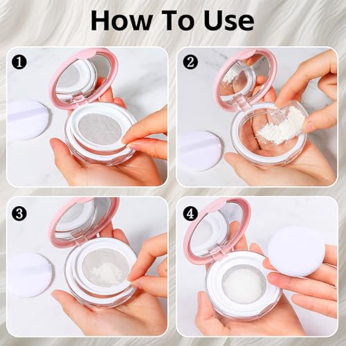 • Travel-Friendly Design: Loose powder container with puff is compact and lightweight, making it ideal for travel. The refillable plastic travel compact with mirror ensures you can touch up your makeup anytime, anywhere.