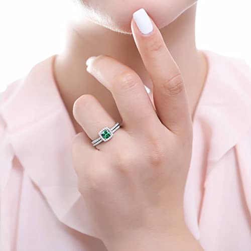 BERRICLE Sterling Silver Halo Wedding Engagement Rings Simulated Emerald Cushion Cut Cubic Zirconia CZ Ring Set for Women, Rhodium Plated