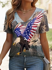 Why Choose Free from Fear By Vincent Hie Women's T Shirt Graphic Animal American Flag Vintage contemporary retro Short Sleeve V Neck Regular Tops Daily Weekend Print Blue Summer Spring?