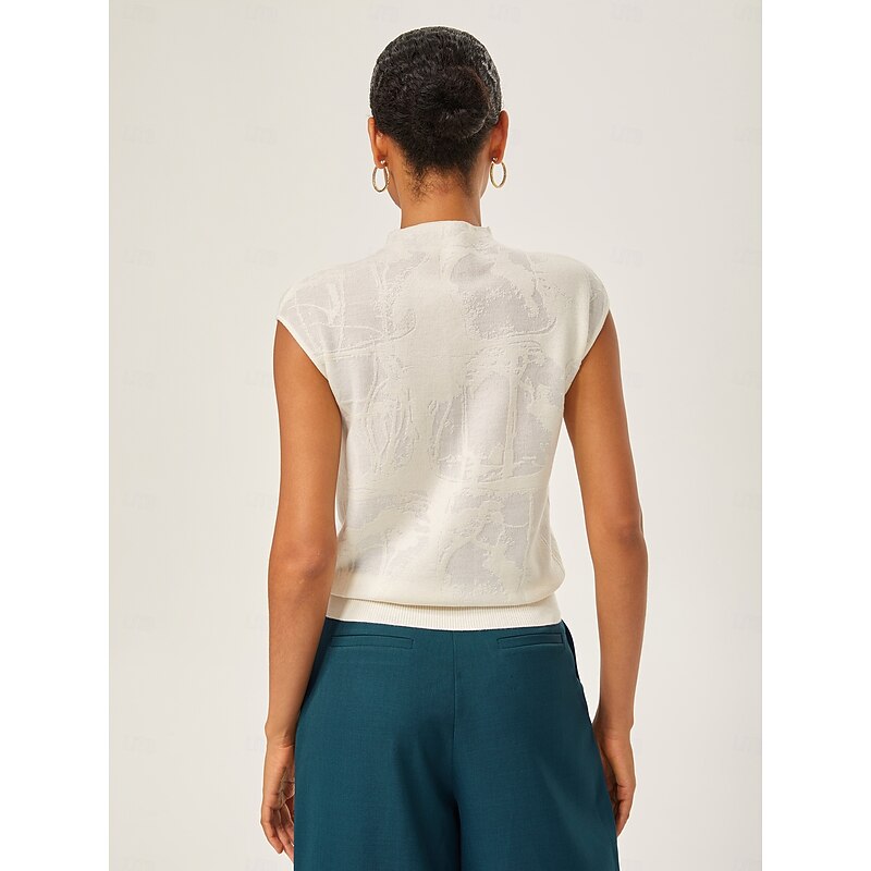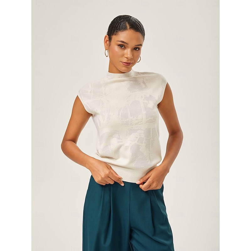 Why Choose Ivory Wool Jacquard Mock Neck Knit Top?