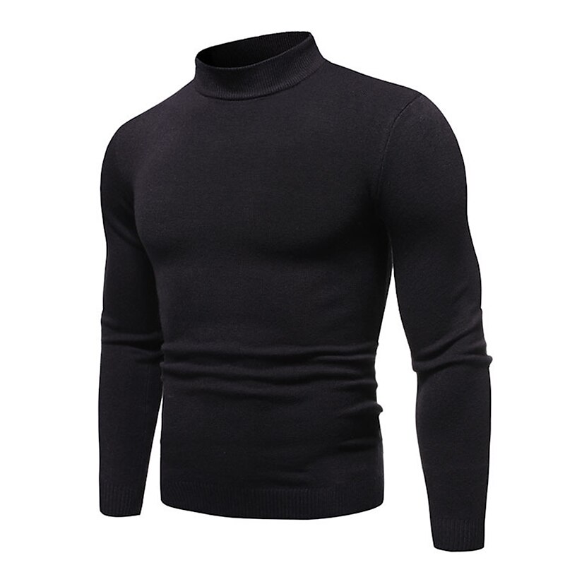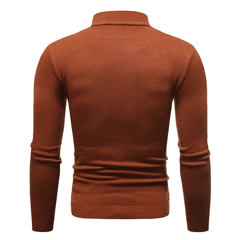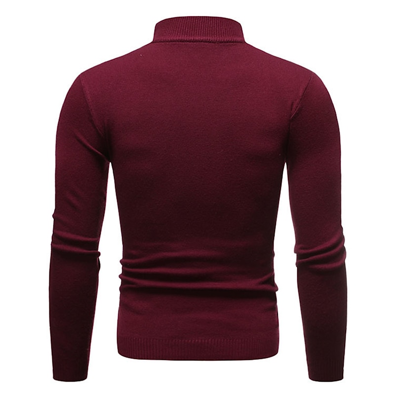 More information about Men's Pullover Sweater Jumper Knit Sweater Ribbed Knit Regular Knitted Plain Mock Neck Basic Keep Warm Daily Wear Going out Clothing Apparel Fall Winter Wine Black M L XL