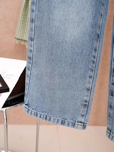 TiaoBug Kids Girls Lace Trim Elastic Waist Wide Leg Jeans Pants Vintage Casual Loose Denim Trousers Cowboy Bottoms 7
