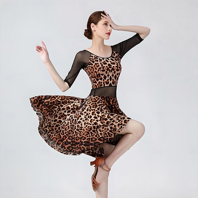 $41.99 - Latin Dance Dress Leopard Print Solid Splicing Women's Training Performance Half Sleeve High Spandex 2025. Shop for cheap Practice Dresses online? Buy at lightinthebox.com on sale today!
