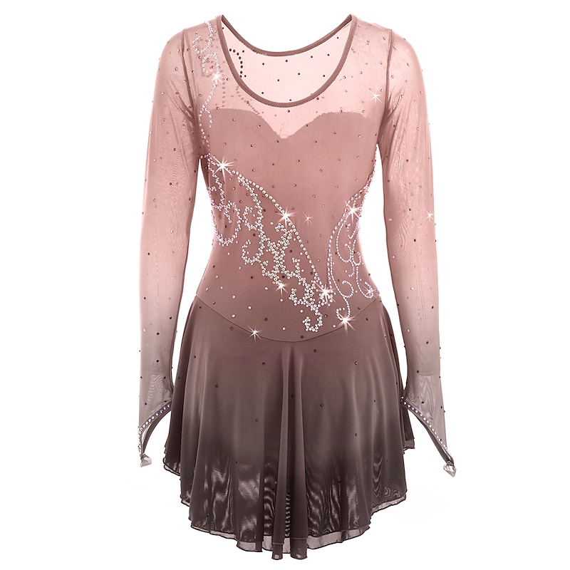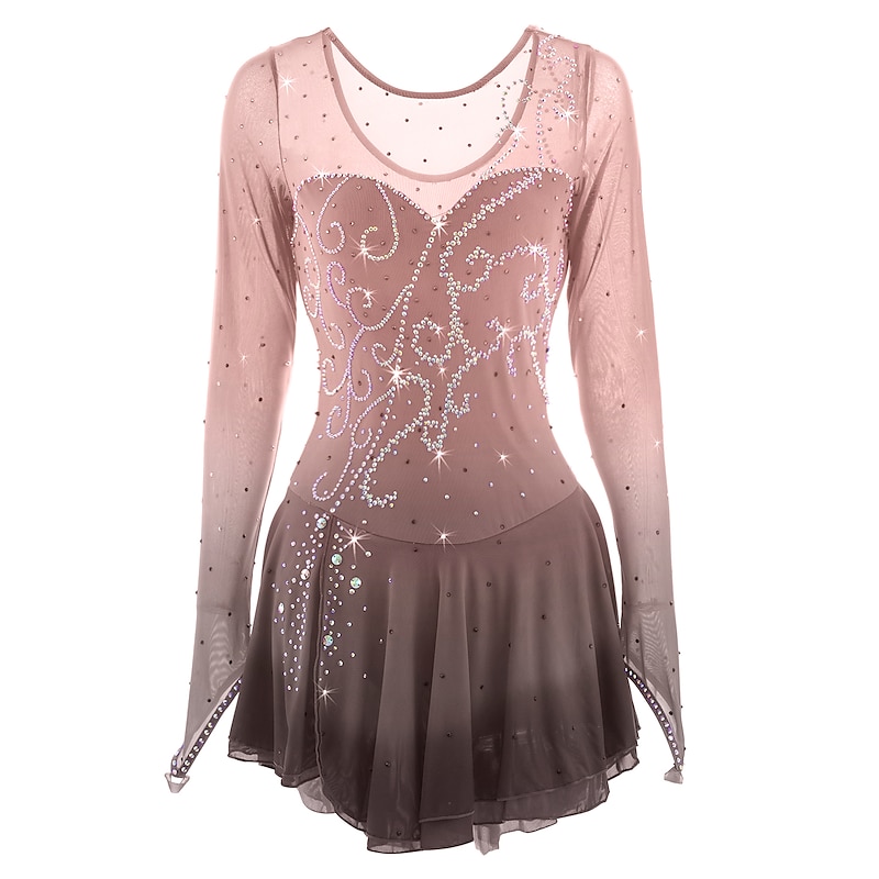 Figure Skating Dress Women's Girls' Ice Skating Dress Outfits Yellow Dark Red Dusty Rose Halo Dyeing Mesh Spandex High Elasticity Competition Skating Wear Ice Skating Figure Skating 13