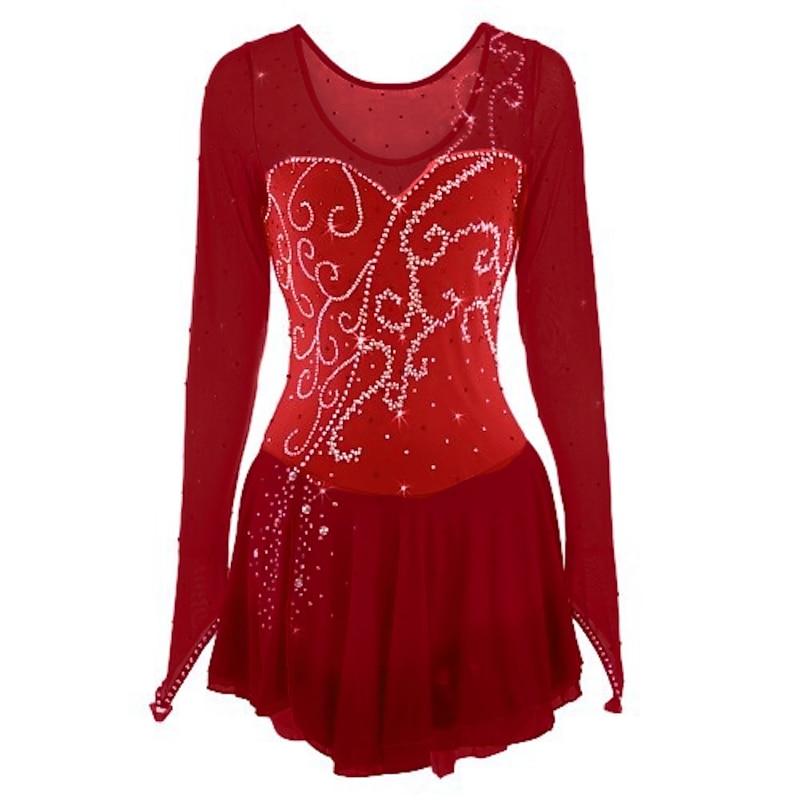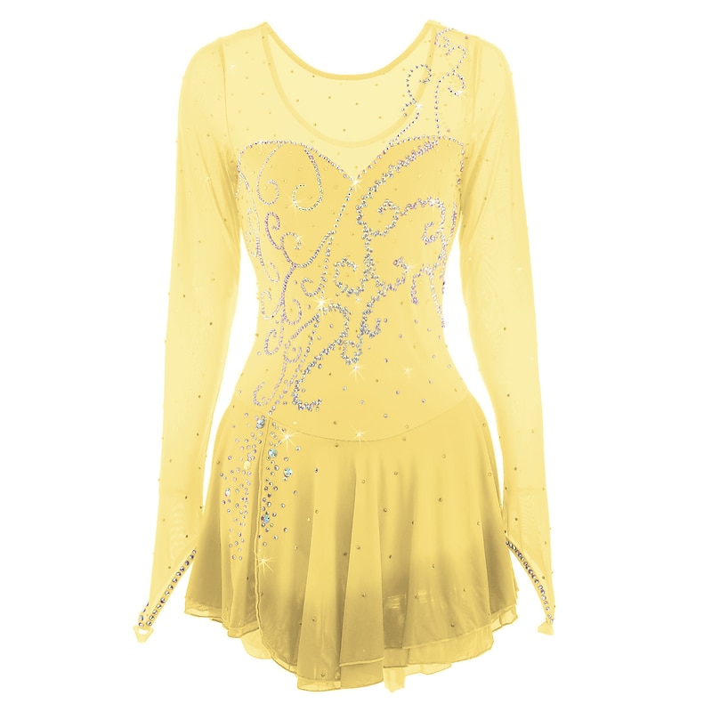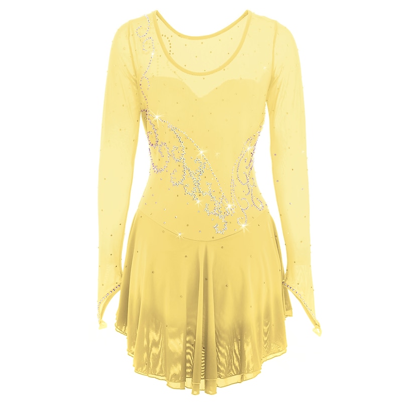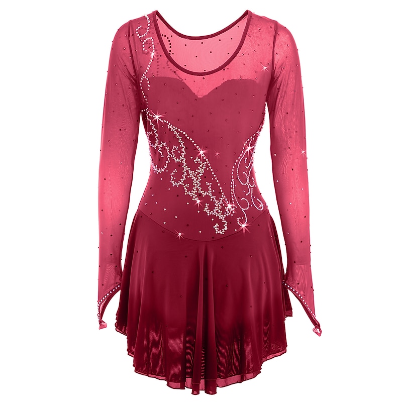 More information about Figure Skating Dress Women's Girls' Ice Skating Dress Outfits Yellow Dark Red Dusty Rose Halo Dyeing Mesh Spandex High Elasticity Competition Skating Wear Ice Skating Figure Skating
