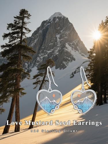 trending ! Dorunmo Mountain Earrings 925 Sterling Silver Mustard Seed Drop Earrings Turquoise Mountain Dangle Christian Faith Jewelry Gifts for Women
