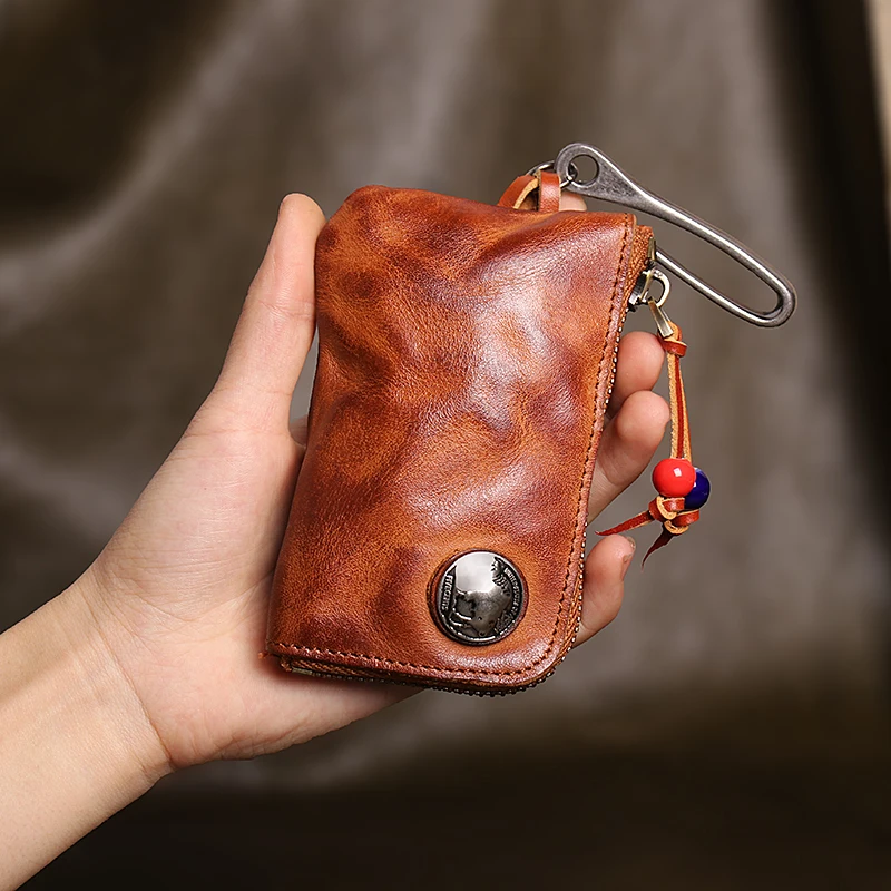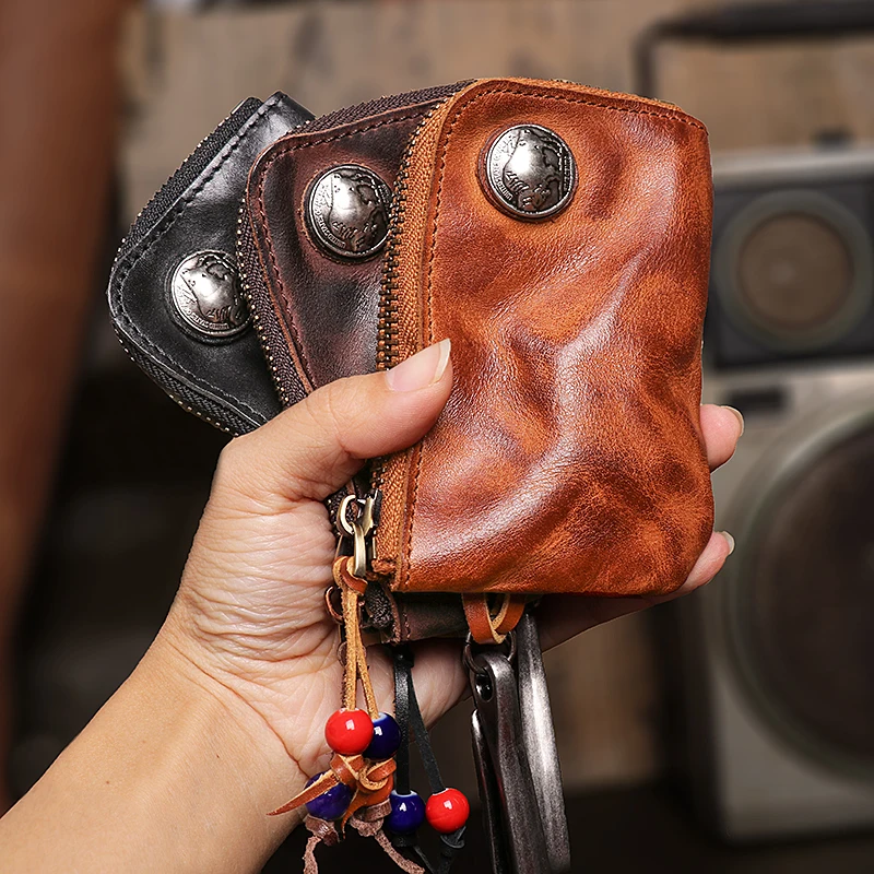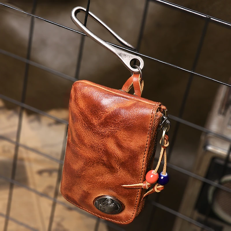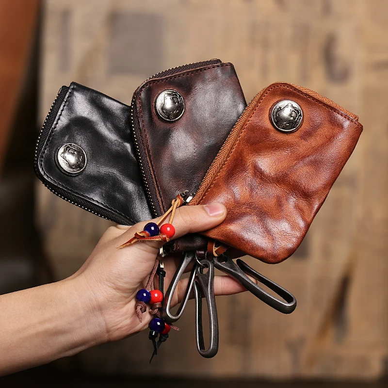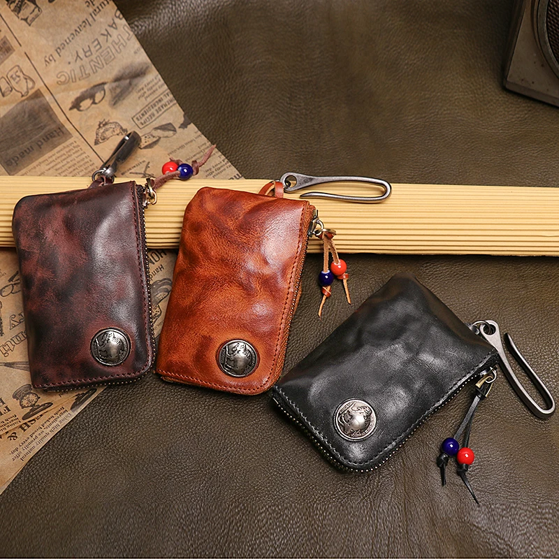 Nice and functional First Layer Leather Key Wallet for Men Short Vintage Handmade Car Key Holder Coin Purese Card Case Bag Organizer Housekeeper.