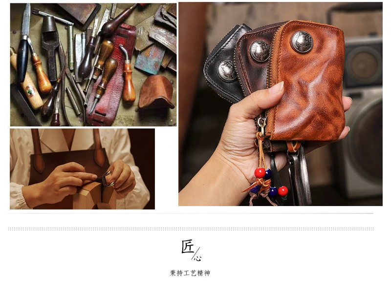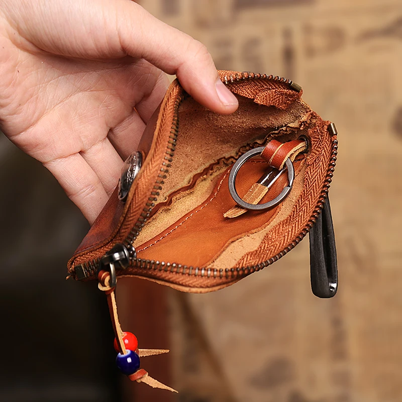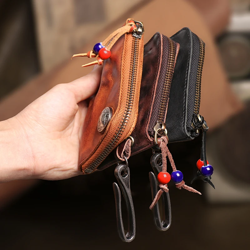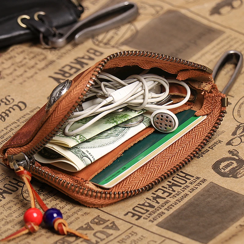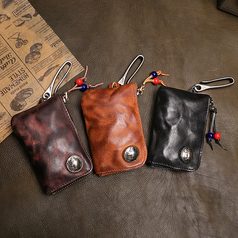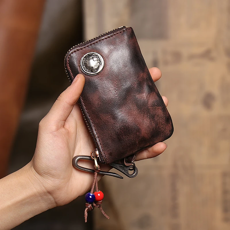 Nice and functional First Layer Leather Key Wallet for Men Short Vintage Handmade Car Key Holder Coin Purese Card Case Bag Organizer Housekeeper.