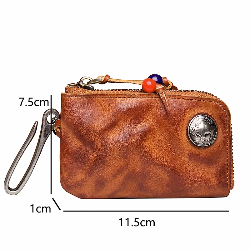 The First Layer Leather Key Wallet for Men Short Vintage Handmade Car Key Holder Coin Purese Card Case Bag Organizer Housekeeper fits perfectly and works well.