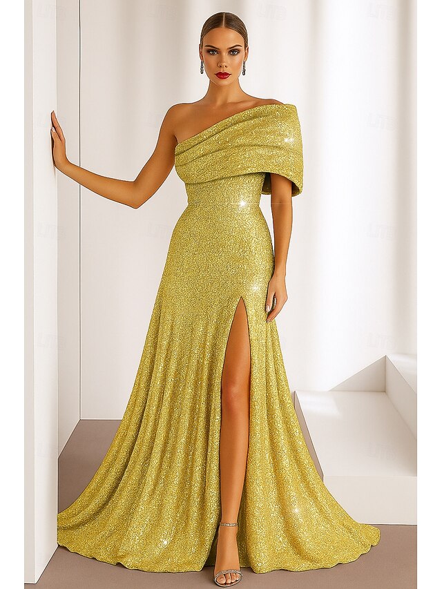 $144.99 - Sequined Gold Black A-Line Cocktail Dresses Elegant Dress Formal Wedding Floor Length Sleeveless One Shoulder Sequined with Glitter 2025 2025. Shop for cheap Empire Waist Evening Dresses online? Buy at lightinthebox.com on sale today!
