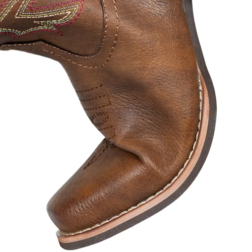 SheSole Women's Cowboy Boots Square Toe Western Cowgirl Mid Wide Calf Embroidered Boots Brown 5