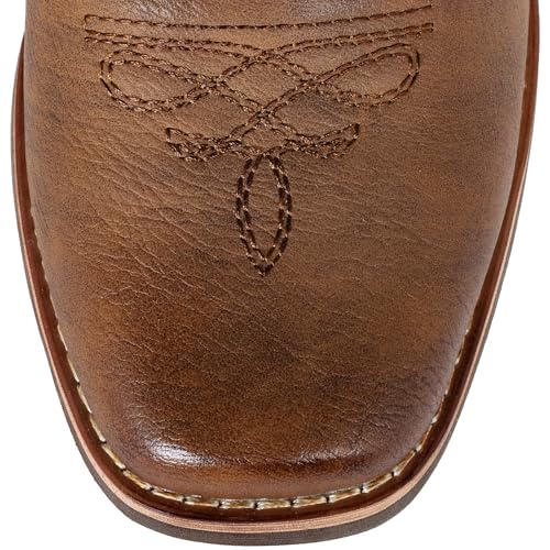 SheSole Women's Cowboy Boots Square Toe Western Cowgirl Mid Wide Calf Embroidered Boots Brown 6