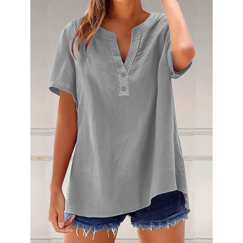 This Women's Blouse Solid Color Plain Vintage sleek Casual Short Sleeve V Neck Notched Neck Regular Tops Daily Holiday Buttons Light Green Blue Brown Gray Light Blue Summer Spring combines elegant design with practical functionality. Every detail has been carefully considered to ensure you get the best possible experience. The first-class construction means this product will serve you well for years to come.