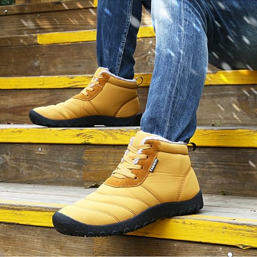 Helenbra Men's Winter Snow Boots,Hand Stitching Lace Up Outdoor Anti-Slip Waterproof Fur Lined Warm Sneakers Lightweight Flat Walking Shoe Casual Ankle Boots 1