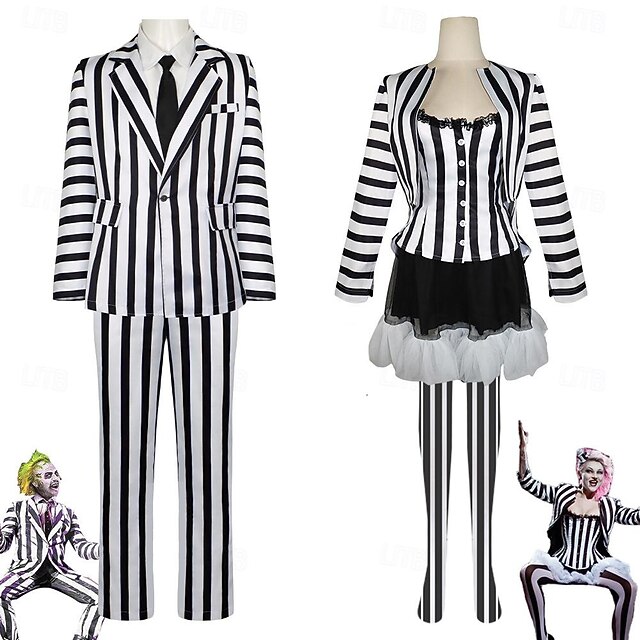 This Couples Beetlejuice Beetlejuice Cosplay Costume Outfits Men's Women's Movie Cosplay Cosplay Costume Party Halloween Carnival Masquerade Event / Party Masquerade combines elegant design with practical functionality. Every detail has been carefully considered to ensure you get the supreme possible experience. The finest construction means this product will serve you well for years to come.