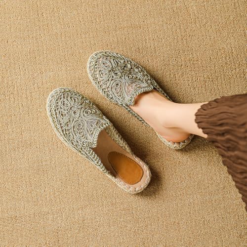 Putu Women's Espadrille Hollow Out Mules Closed Toe Slide Sandals Summer Vacation Flat Shoes 6