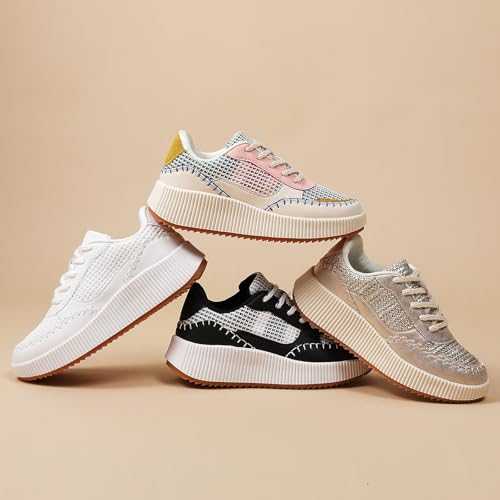 • Woven/Rhinestone Upper: The knit stitch pattern on these fashion sneakers adds texture, interesting colors, and enhances the overall quality and appeal of the design, instantly adding a stylish touch to your outfit. Easily matches any outfit, allowing you to show off your personal style.