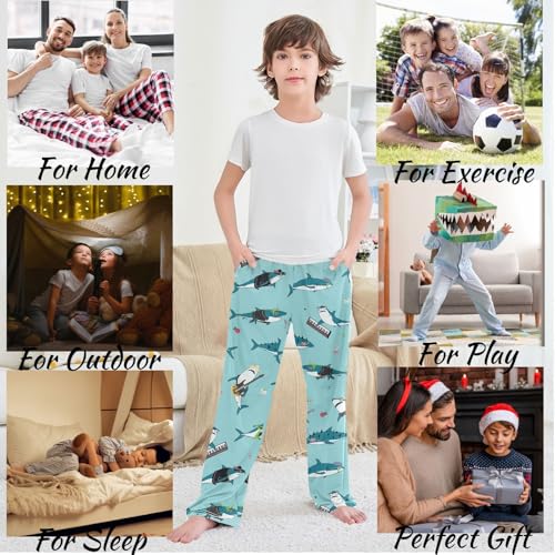 visesunny Boy's Pants Shark Rock N'roll supple Long Bottoms Elastic Waist Trousers Sweatpants with Pockets L