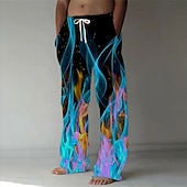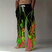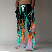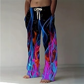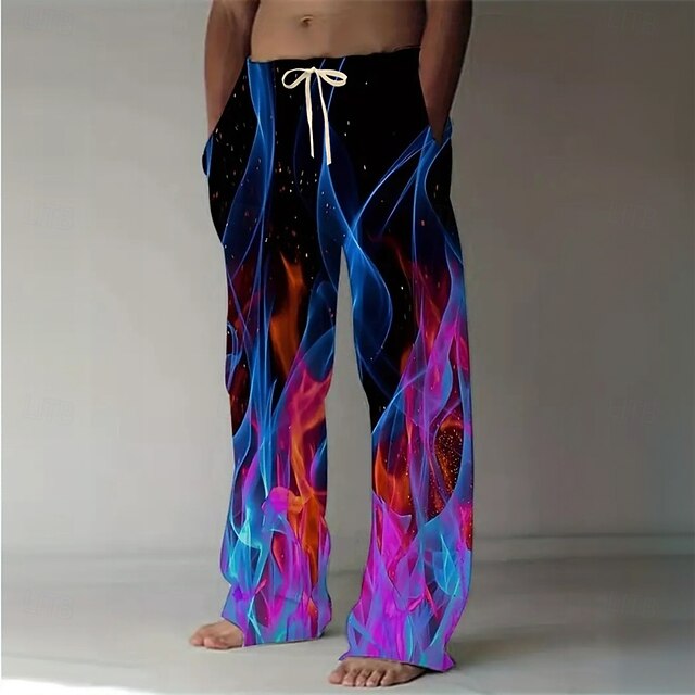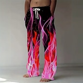 More information about Men's Optical Illusion Flame Trousers Baggy Pants Casual Pants Mid Waist Fashion Casual Outdoor Vacation Elastic Drawstring Waist Linen-Like Pants with Pockets Spring Fall 3D Print Pink Blue Green