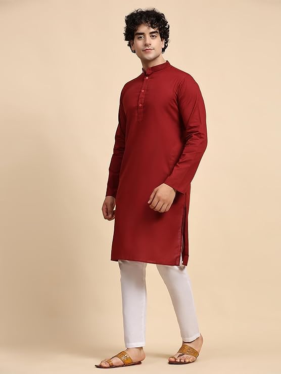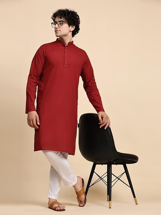 • Mandarin Collar: The stylish mandarin collar adds a refined touch, giving the kurta a contemporary yet traditional appeal.