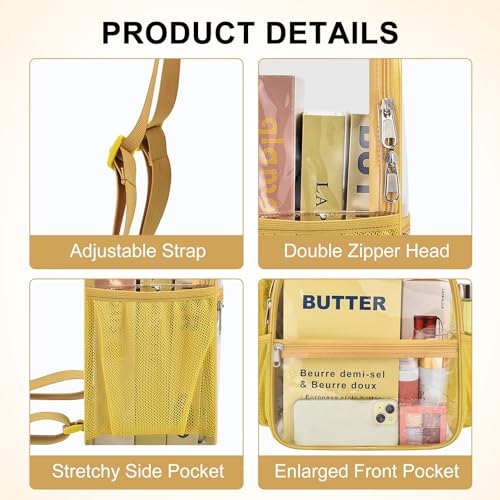 Clear Backpack Stadium Approved 12×12×6 Clear Mini Backpack Small Transparent Backpack for Concert, Beach, Work, Travel & Sporting(Gold)