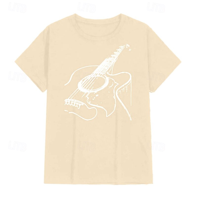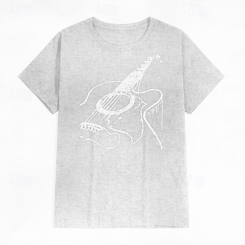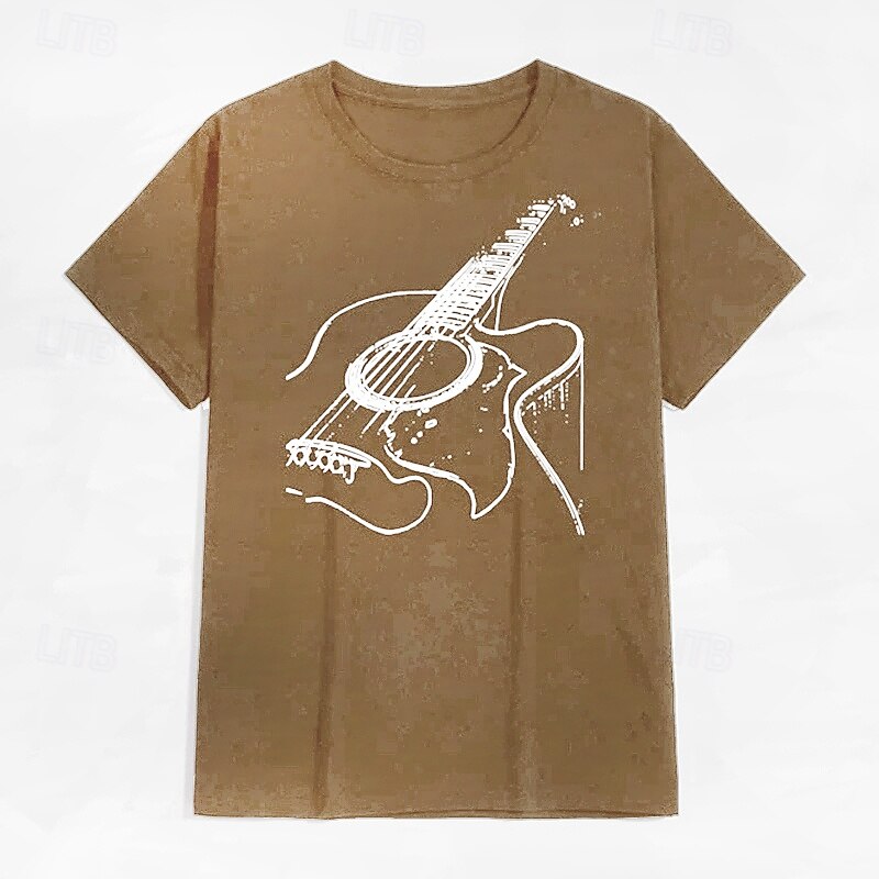 Mens T-Shirt Acoustic Guitar Graphic Short Sleeve 7