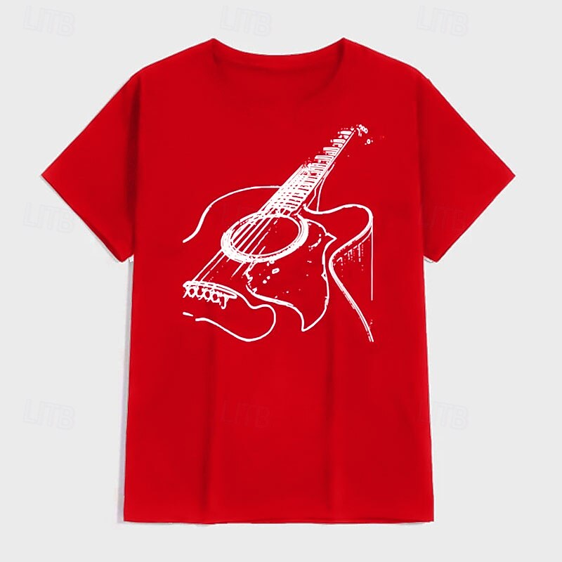 HOT ! Mens T-Shirt Acoustic Guitar Graphic Short Sleeve