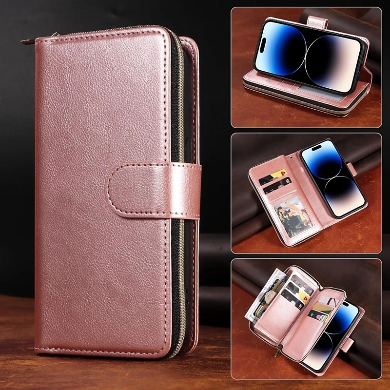 Why Choose Phone Case For iPhone 17 Pro Max 17 Air 16 15 14 Pro Max Plus 13 12 11 Pro Max Mini Wallet Case with Stand Holder Magnetic Zipper Retro TPU PU Leather?